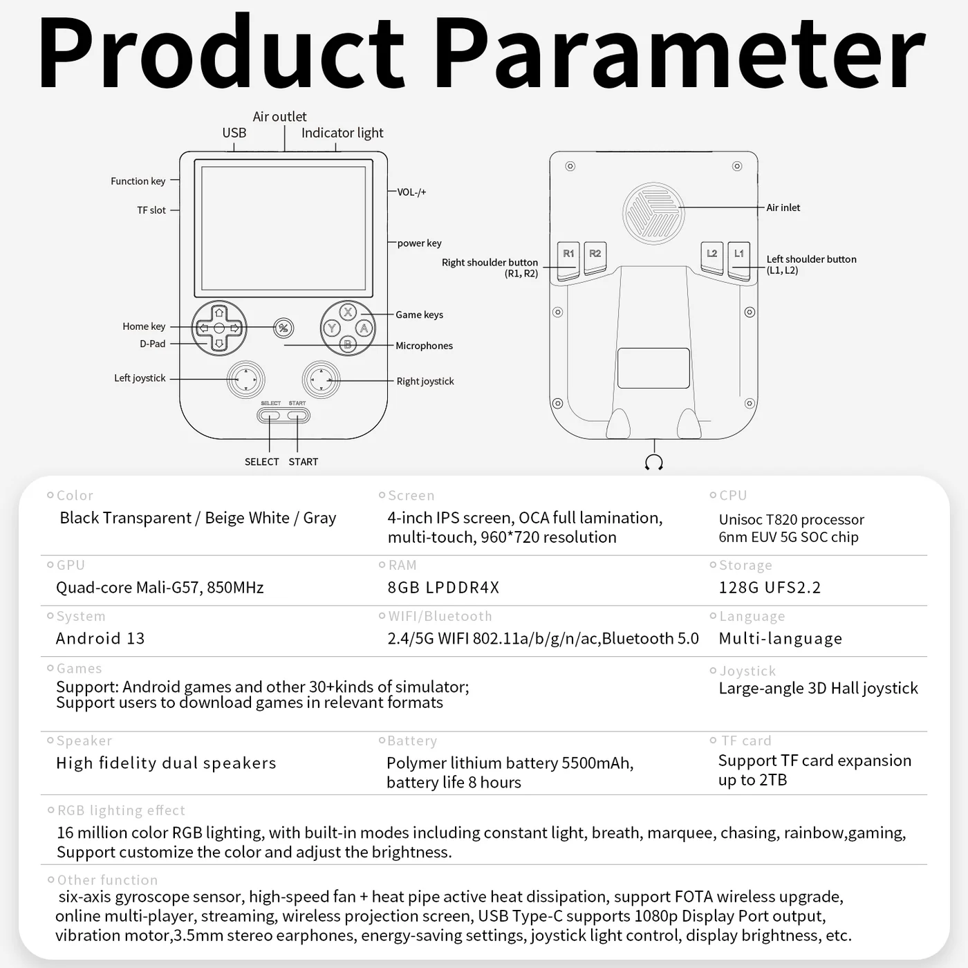 RG406V با بدنهای محکم و خوشدست طراحی شده و فرم عمودی آن یادآور کنسولهای دستی کلاسیک است. دکمهها کیفیت مناسبی دارند و جویاستیکهای آنالوگ با حساسیت دقیق، کنترل بازیها را راحتتر میکنند. ابعاد قابلحمل و وزن کم، آن را گزینهای عالی برای بازیهای طولانی و حمل روزانه میسازد.